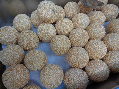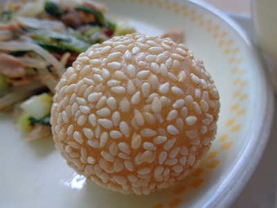 胡麻の香ばしい香りがしていました。中国料理の甘い点心のひとつで、表面はカリッと中はもちっとした食感です。