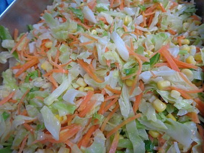☆ コールスローサラダは、キャベツや人参を千切やみじん切りに細かく切って作るサラダです。