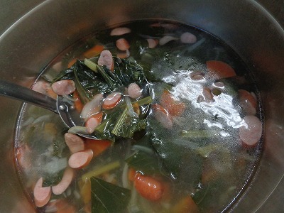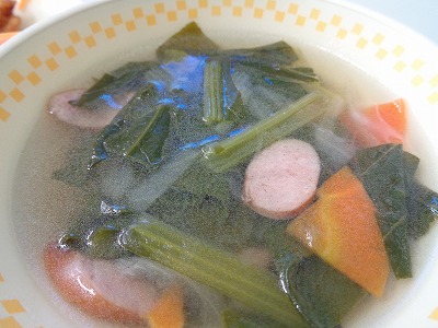 ☆ コンソメスープは、小松菜、人参、玉ねぎの野菜が入っています。