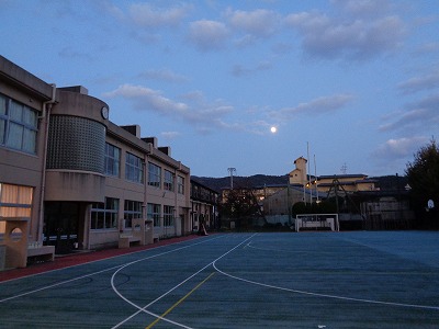 職員室から明るいお月さまがよく見えていました。