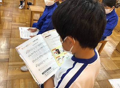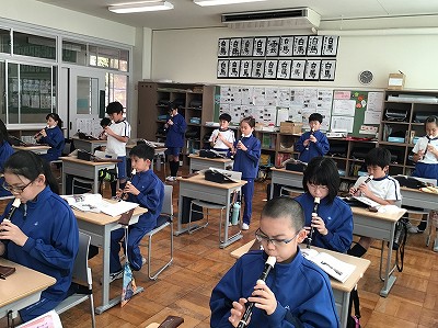 教室では、「♪朝の歌」のリコーダー奏の練習を行いました。もちろん、輪奏も取り組みました。二部、三部とリコーダーの重なりもハーモニーとなって美しくひびいていました。