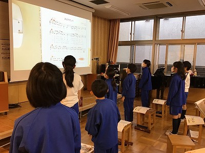 先週より、メロディがしっかりと歌えているので、二部の輪唱も三部の輪唱も、いい感じに歌うことができました。音が重なって聞こえる部分が美しく、つられないように、自分の持ち場を確実に歌唱していました。