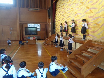 練習後の振り返りでは、たくさんのお友達がチャレンジした動き・身振りに気付いて、「よかったよ!」と意見を出してくれました。友達からほめてもらえて、うれしかった気持ちは、きっと発表会本番へのモチベーションになることでしょう。