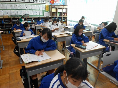 2時間目は国語の学習を行いました。今日は、「世界にほこる和紙」のまとめプリントに取りかかります。