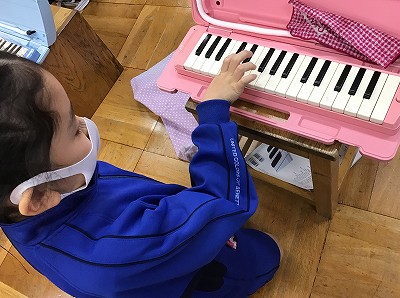歌唱の後は、鍵盤ハーモニカ練習です。