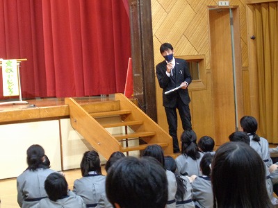 まずは、全校みんなに見てもらいたい「1年 鑑賞ポイント」の紹介してくれました。
