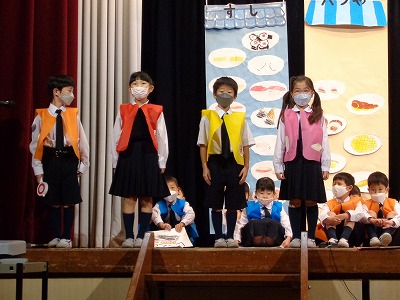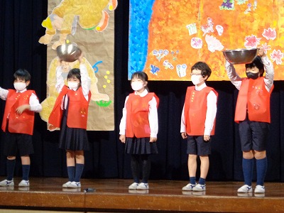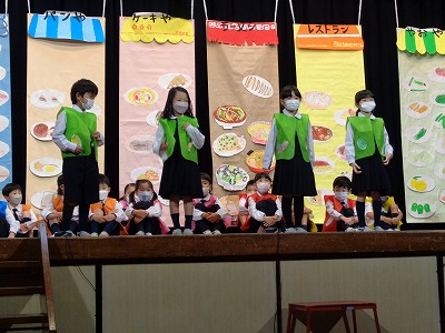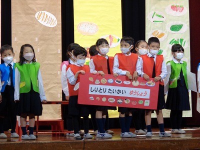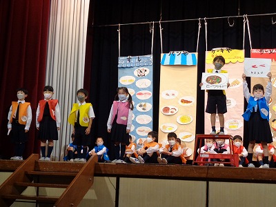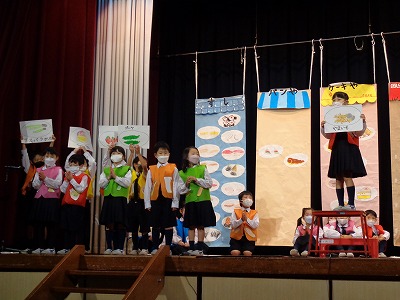 【舞台発表[1年生]『たべものやさんの しりとり大かい』】