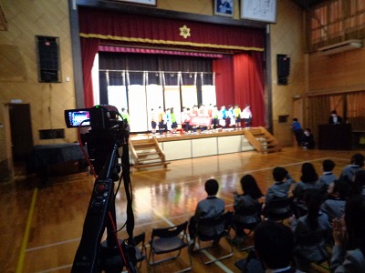 3年生の発表を見た全校生。4,6年生がうれしいコメントを言ってくれました。
