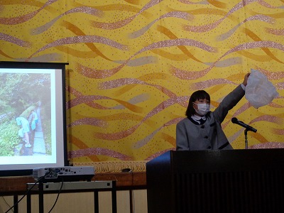 第一部では、世界の民話を「十字グラフ(ポジショニングマップ)」の縦軸や横軸に分類してまとめた結果を、発表しました。ハッピーエンドの物語が多く、「めでたし めでたし」のフレーズにつながっていたそうです。興味深い民話の分析でした。