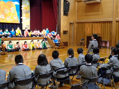 1年生の発表を見た全校生。鑑賞のポイントを意識したうれしいコメントを、2年生,6年生が伝えてくれました。