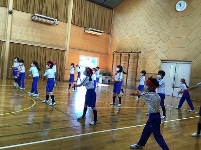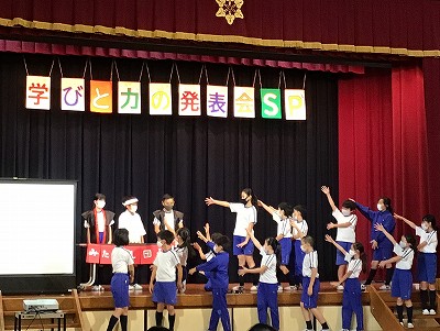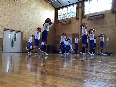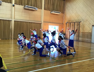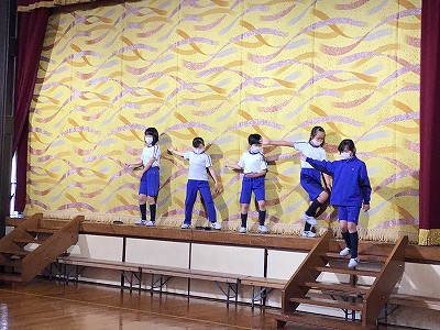 舞台発表の後は、フロアに移動して、体育での学び「You can do it !!!!!」の運動表現活動の発表を行いました。