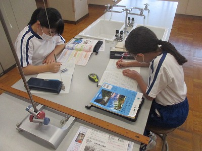 まとめた資料をタブレットで操作するのも、5年生自身です。