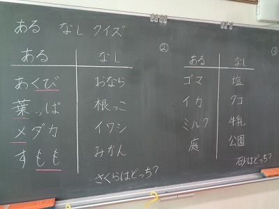 朝の時間は「あるなしクイズ」をしました。