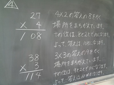 今日は「一の位と十の位にくり上がりがあるかけ算」の学習をしました。