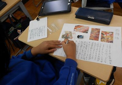 国語の学習では「伝統工芸のリーフレット作り」に取り組んでいます。伝統工芸の「良さ」を伝えられるよう、調べた内容や感じたことを文章にしていきました。