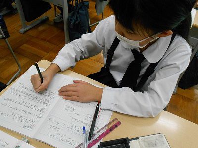 算数は「面積」の学習です。これまでは「㎠」という単位を使用していましたが、今日の学習では「㎡」や「㎢」という単位も登場しました。