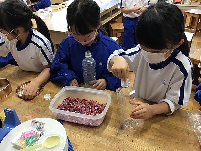 ビーズを入れて“ガチャガチャ”と振ってみたり…