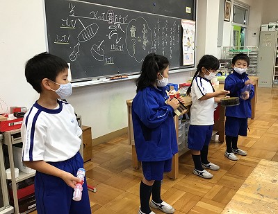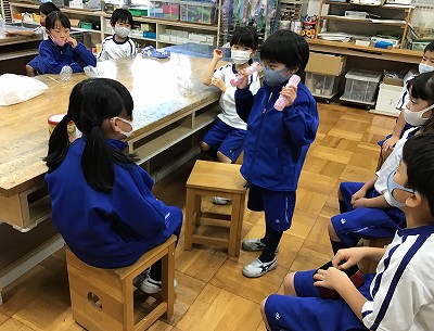 「♪音のマーチ」の♪ふしぎ ふしぎ ふしぎな音がする!の歌詞に合わせて、グループの発表も行いました。
