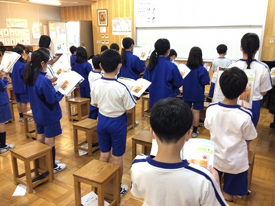 「♪もみじ」の歌唱で音楽の時間が始まりました。過ごしやすい秋の気候が続いています。