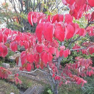 鮮やかな深紅で、南東の粟田山を借景にして、とても美しいです。