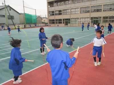 また、運動場では、縄跳びをして遊んでいる姿が多く見られました。
