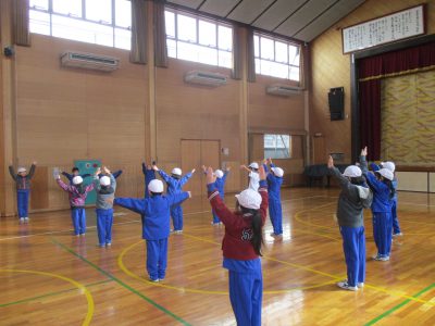 登校時は時雨れていましたが、みんなが準備体操をしていると、晴れ間が見えてきました。