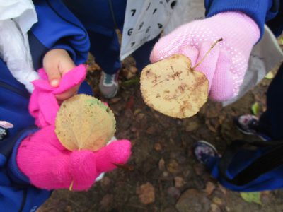 途中で落ち葉も拾いました。