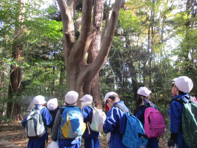 鳥の囀りを聞きながら、落ち葉を拾ったり、いろいろな木々を見ながら歩きました。