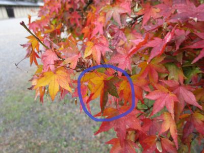 醤油のおせんべいのような匂いのするカツラの葉も見つけました。