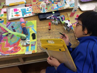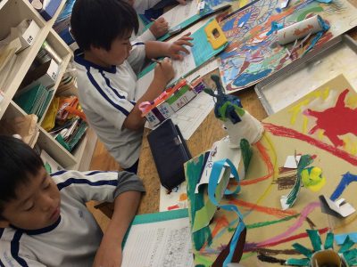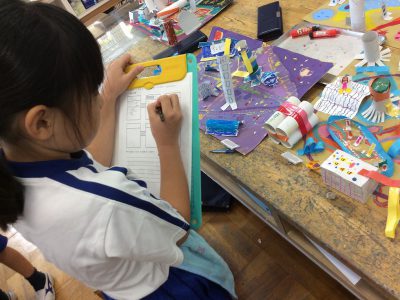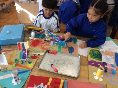 など、自分のテーブルとは違う所で取り組んでいた友達の作品を見る機会が、新鮮であったようです。