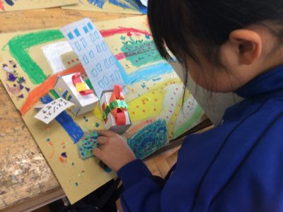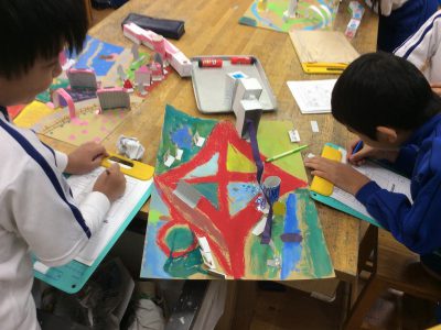 創り出した町の題名を付けることに苦労していた子達が数名いました。