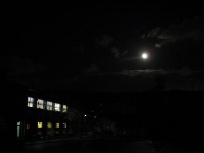 1018年。ちょうど千年前の今日?、明日?、藤原道長が有名な歌「この世をば 我が世とぞ思う 望月の 欠けたることも なしと思へば」を詠んだ日だからです。きっと文教キッズがいつも運動場から見ている京都東山方面を見て詠んだのではないか・・・と想像したくなります。そんな思いでシャッターを切りました。