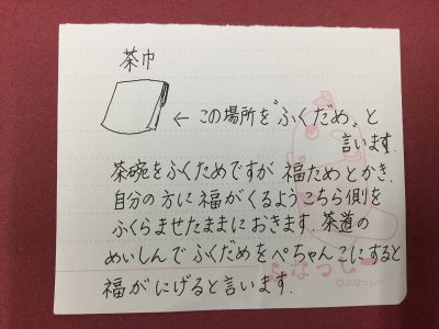 お茶巾の扱いのほか、お茶杓と帛紗の扱いもこれまでより覚えることが増えました。