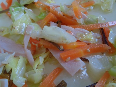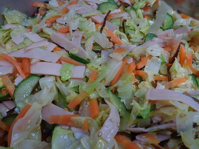 キャベツ、きゅうり、人参を合わせて、色とりどりに仕上がりました。