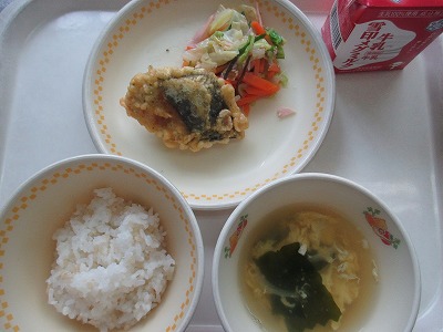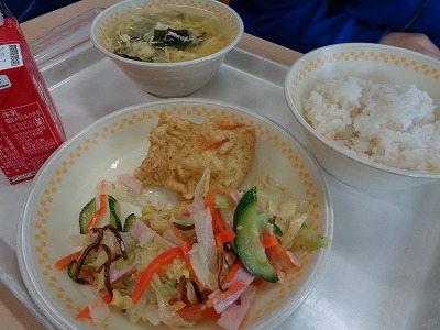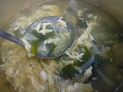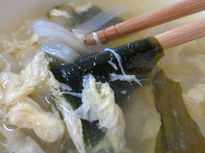 ☆ かきたま汁は玉ねぎ、わかめ、卵の具材です。すまし汁で体が温まります。