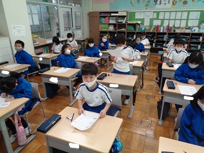 動画を通して、3つの感染症(病気→不安→差別・偏見)のくり返しを断ち切るためにできることを考えました。そして、そのためにはどのような判断が必要なのか、ワークシートに記入しました。
