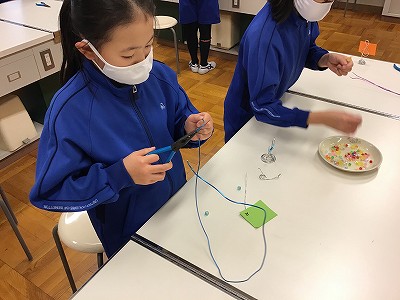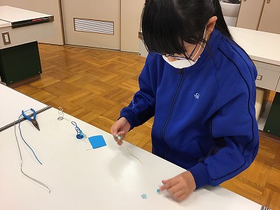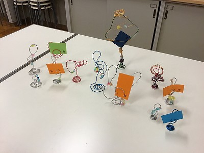 今日のECO生活クラブは、“針金で作ろうフォトスタンド”に取り組みました。前期のクラブ活動で残っていたアルミの針金を使って、自分の思った形にフォトスタンドを作っていきます。