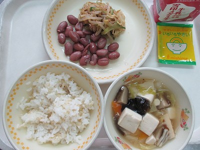 漢字で「棒棒鶏」と書いて「バンバンジー」と読みます。日本では中華料理の定番として知られていますね。バンバンジーは四川料理のひとつです。もともと中国では、蒸して固くなった鶏肉を棒でたたいてやわらかくしていたことから、この名前がついたという説が一番有力だそうです。給食では、もやし、きゅうり、キャベツ、ささみ肉を合わせてサラダのようにしました。