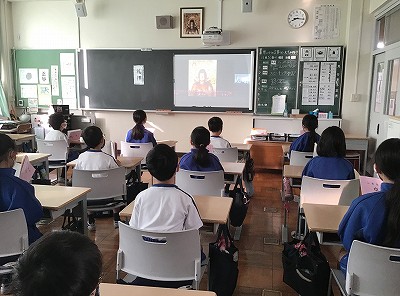 各学年の教室では、落ち着いた雰囲気で礼拝に臨むことができました。