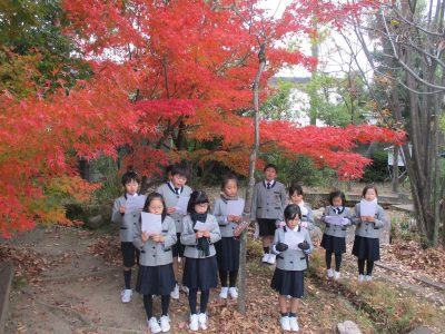 子ども達の歌声と、真っ赤に染まるもみじ。なんと言うことでしょう! あまりの神々しさに感激しました。