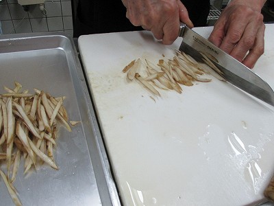 かきあげには、さつまいも、玉ねぎ、ごぼう、三つ葉を混ぜています。