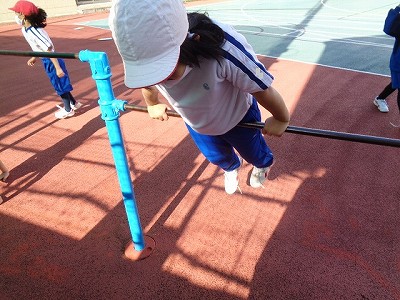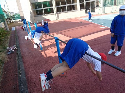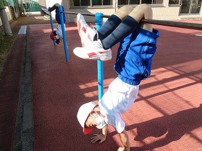 久しぶりの鉄棒に意欲的に一生懸命活動していました。