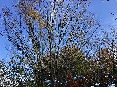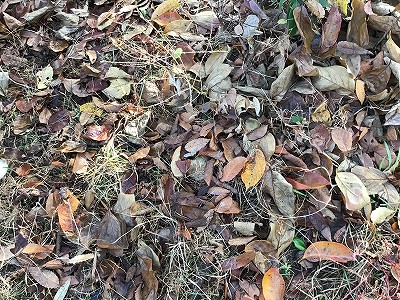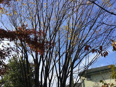 ケヤキの木の葉がほとんど落ちて木の周りは落ち葉でいっぱいでした。