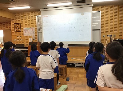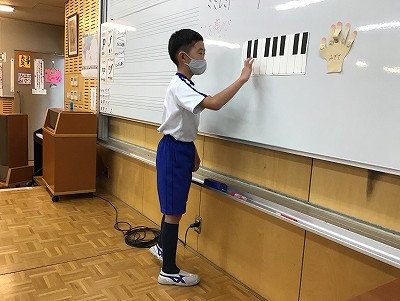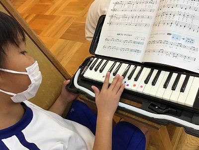 音楽室で「ミミレミ・ファファレ・・・・・♪」と口ずさみながら、鍵ハモのエア練習です。