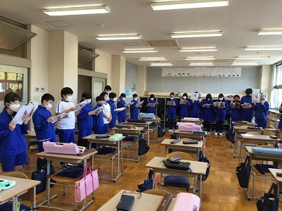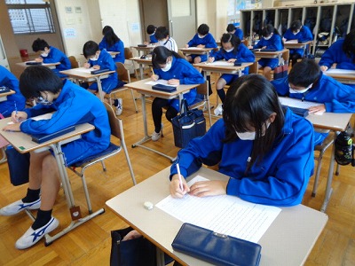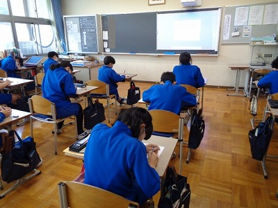「♪明日を信じて」の二部合唱を教室で練習しました。