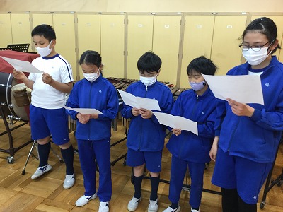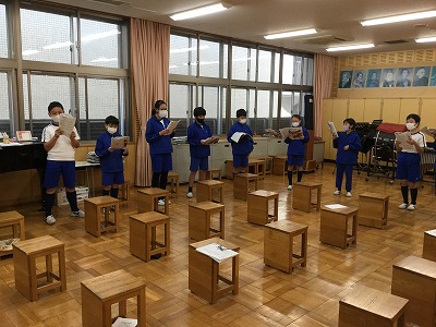 「♪冬げしき」の二部合唱の練習に取り組んでいます。声量のバランスがポイントになることを指摘して、各パートの練習を行いました。
