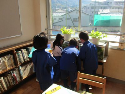 国語の時間は、学校にある(いる)ものをお家の方に紹介する文章を書く学習に取り組んでいます。