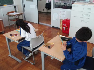 また、スケッチだけではなく、観察のポイント(色や形・大きさ・におい・手触り・感じたことなど)に沿って、気がついたこともメモしました。