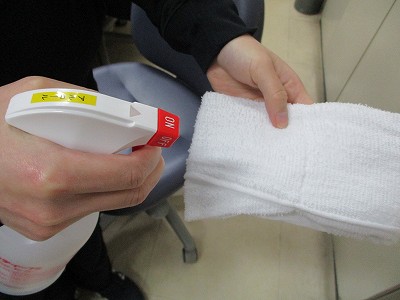 しっかりと、消毒用のタオルに吹きかけてから、消毒したい場所を吹くと良いそうですよ。