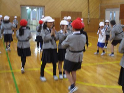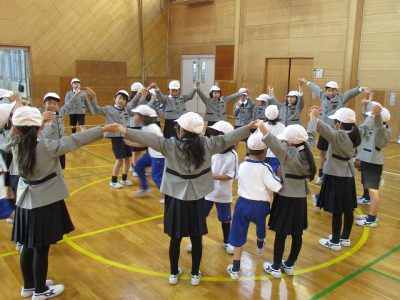 また、挨拶表現を学習して、以前にもやったことのある「英語・握手おにごっこ」で楽しみました。